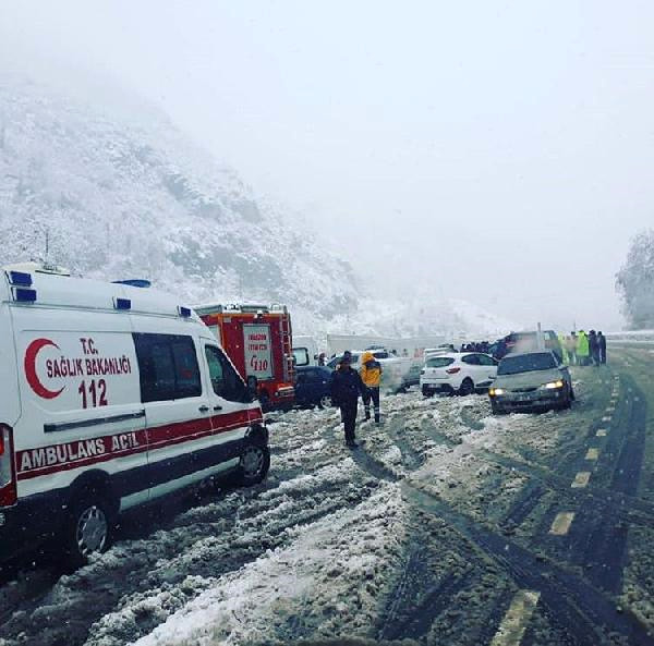 Kaza bugün saat 12.30 sıralarında meydana geldi. Maçka ilçesi Çatak mevkiinde kar yağışı nedeniyle kayganlaşan yolda kontrolden çıkan yolcu minibüsü dereye yuvarlandı. kazada ilk belirlemelere göre 8 kişi yaralandı.